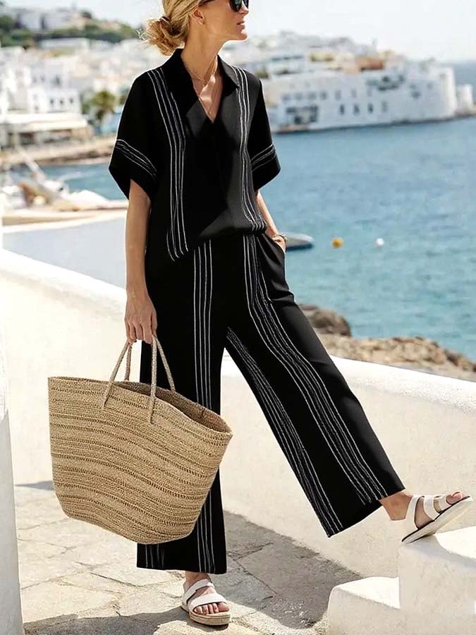 Women'S Loose Striped Wide Leg Pants Suit