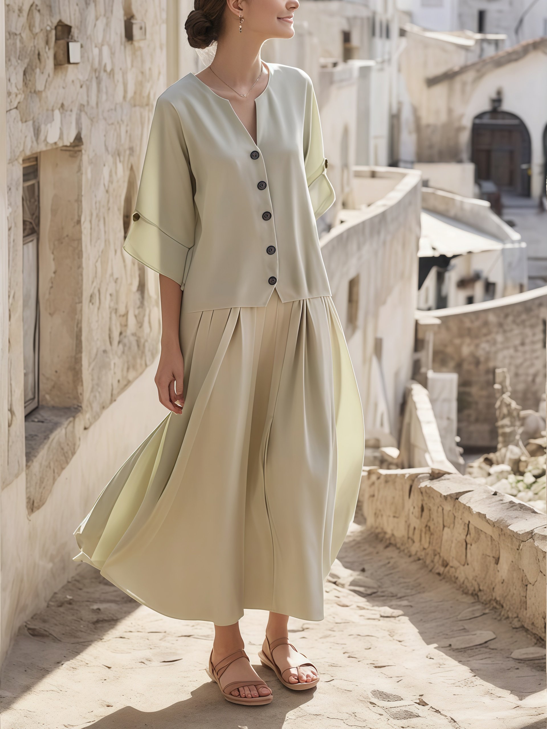 Women's Summer Cotton&Linen Pleated Suit