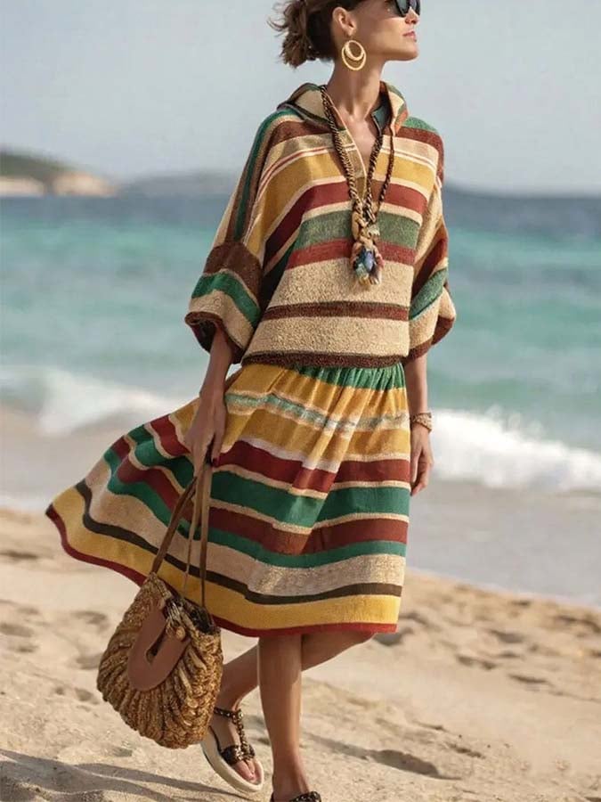 Women's Loose Striped Skirt Suit