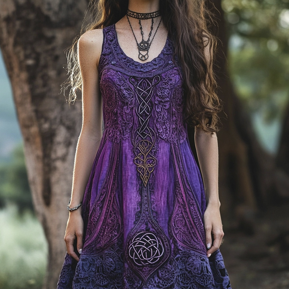 Women's Vintage Viking Tree Of Life Casual Comfort Sleeveless Dress