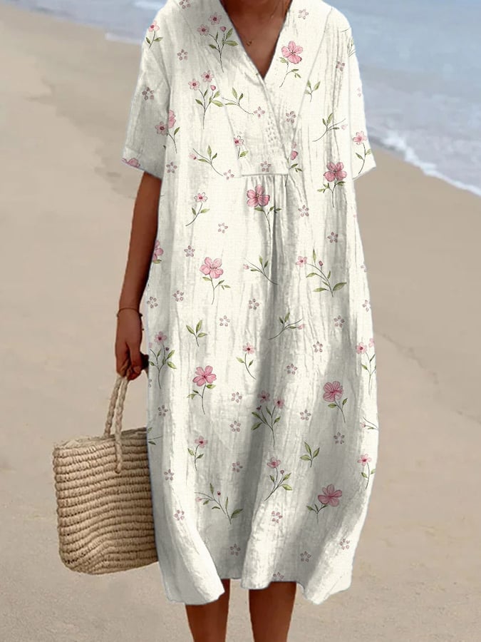 Women'S Solid Color Square Neck Retro Button A-Line Loose Holiday Dress