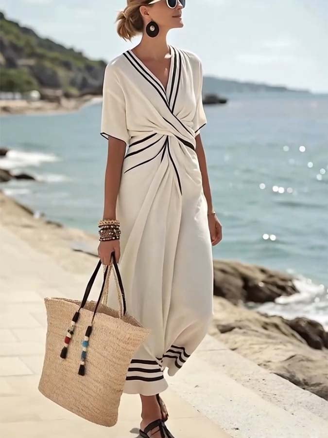 Women'S Loose Striped Print Dress