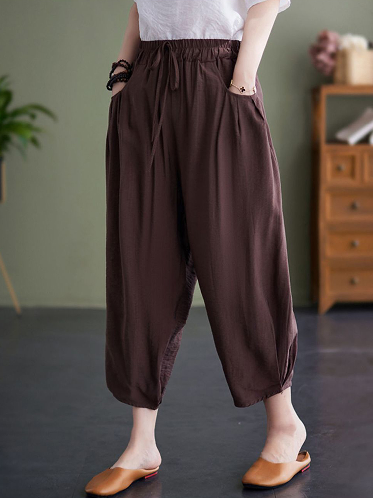 Vintage Pockets Casual Cotton Linen Loose Harem Pants