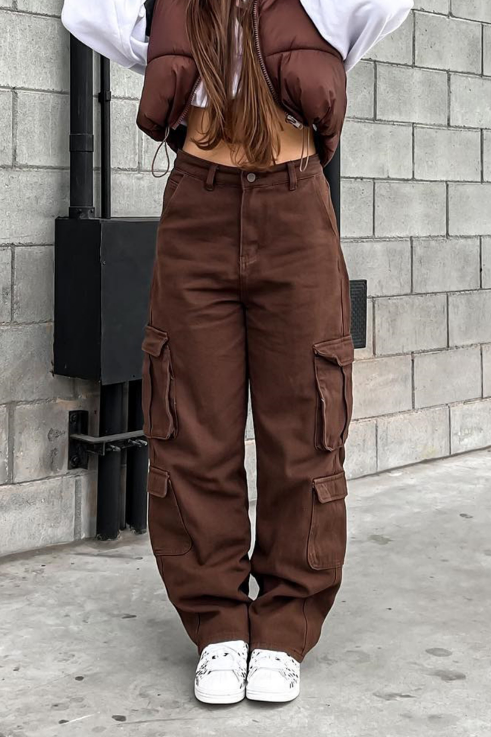 Women's Fashion Solid Color Street Low Rise Denim Casual Cargo Pants