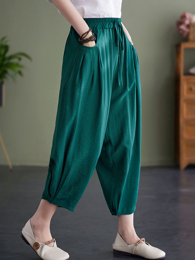 Summer Women's Cotton Linen Loose High Waist Casual Loose Home Bloomers