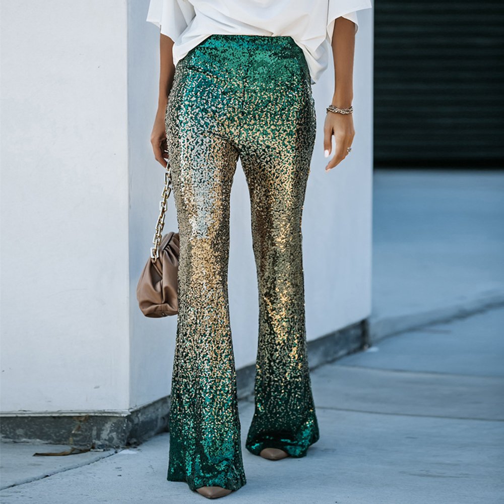 Sparkly Gradient Sequin Flare Trousers Party Clubwear High Waisted Glitter Pants For Women