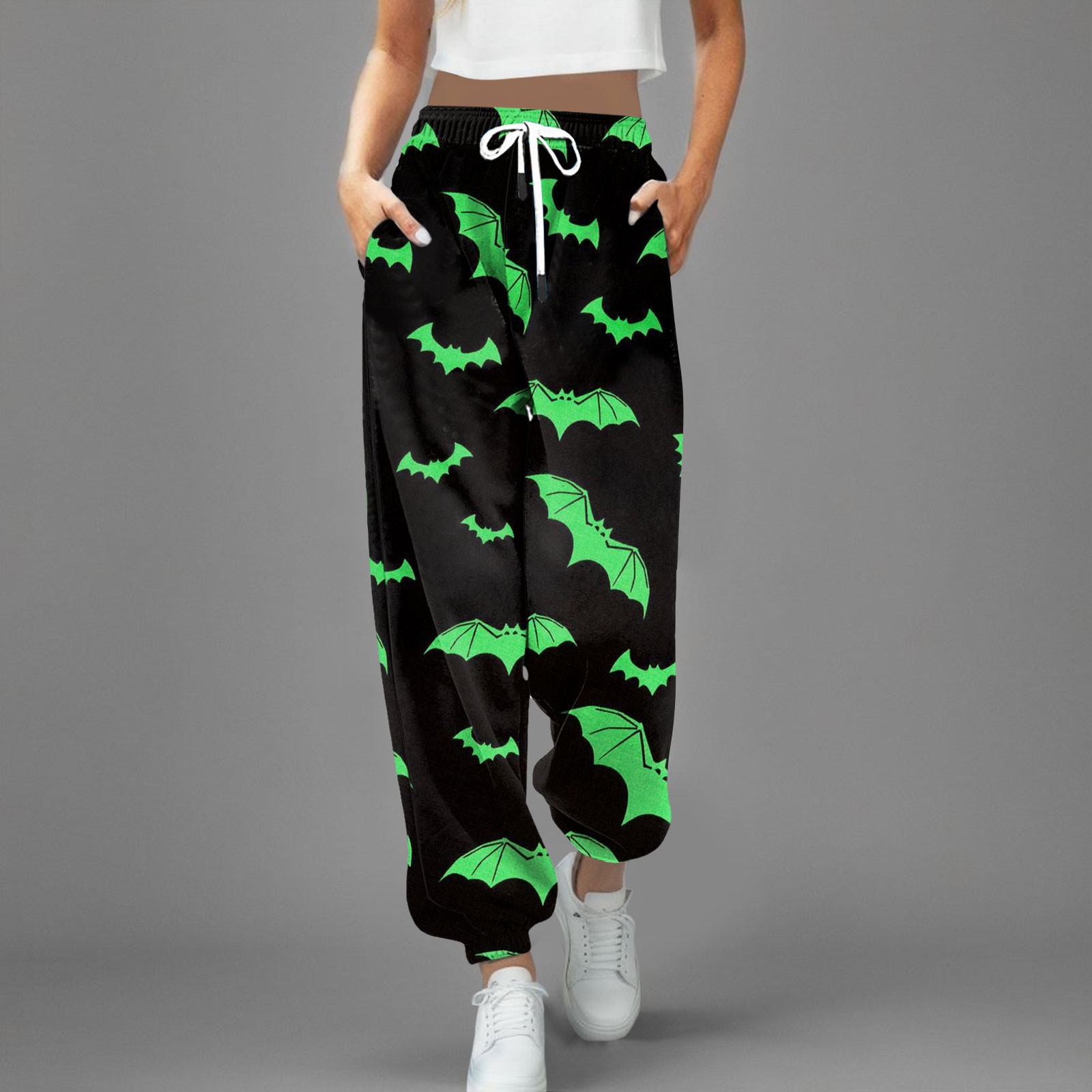 Women's Casual Print Halloween Elastic Waist Loose Pencil Pants