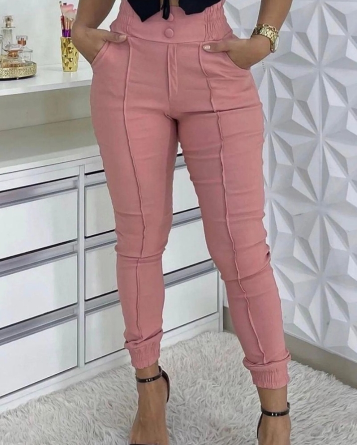 Casual Loose Women's High Waist Street Fashion Solid Color Retro Button Pants