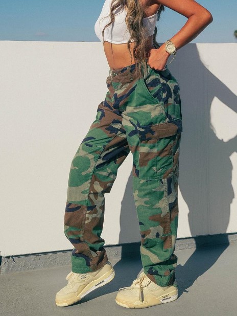Women's High Waist Slim Fashion Stretch Retro Straight Cargo Pants