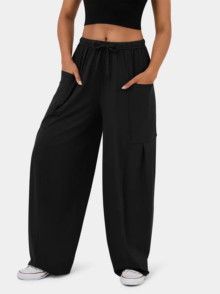 Solid Pocket Loose High Waist Wide Leg Patchwork Bottoms