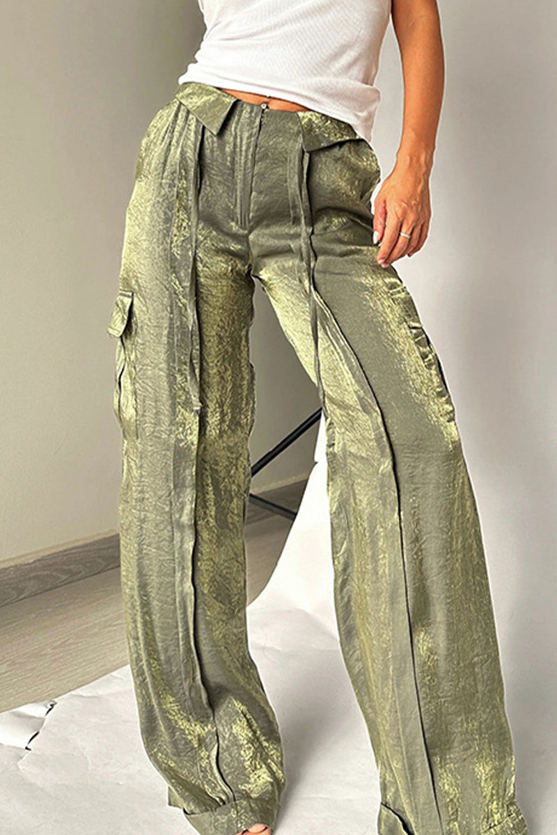 Elegant Solid Sequins Loose High Waist Wide Leg Solid Color Bottoms