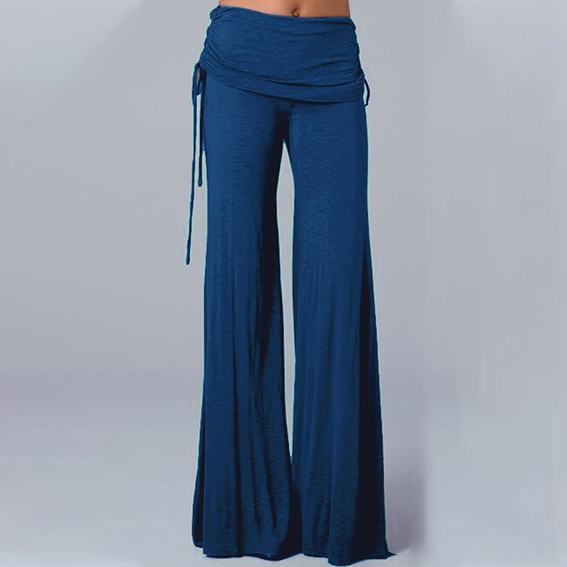 Elegant Solid Fold Loose Wide Leg Solid Color Bottoms(No Belt)
