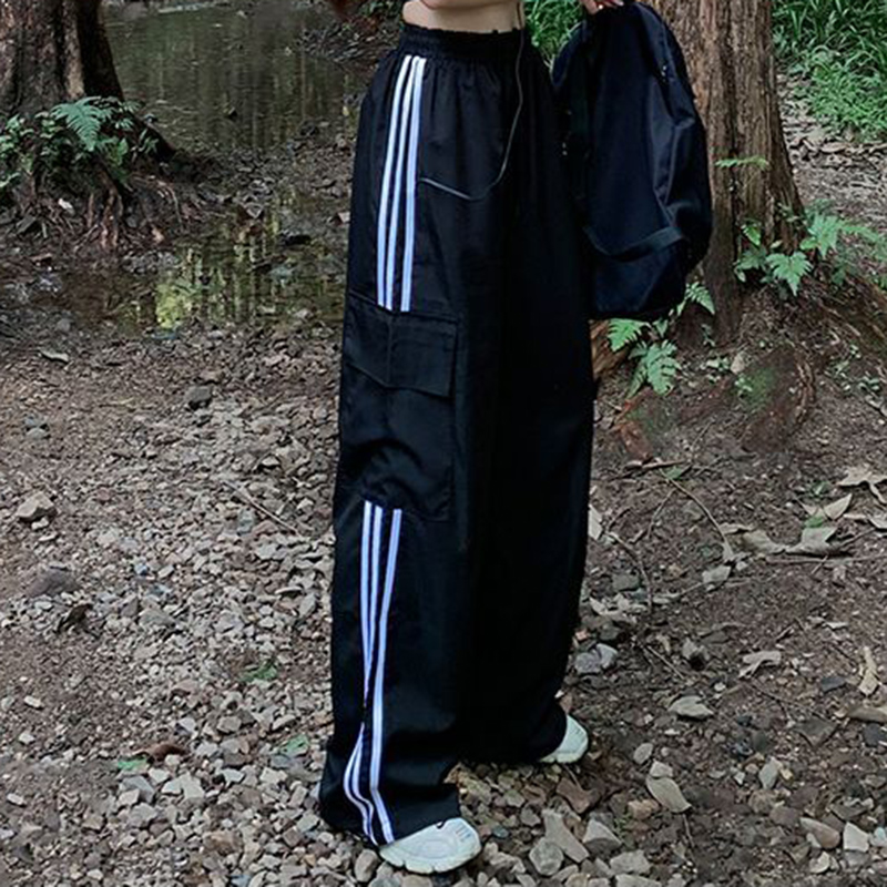 Women's Striped Y2K High Waist Loose Wide Leg Straight Leg Cargo Pants