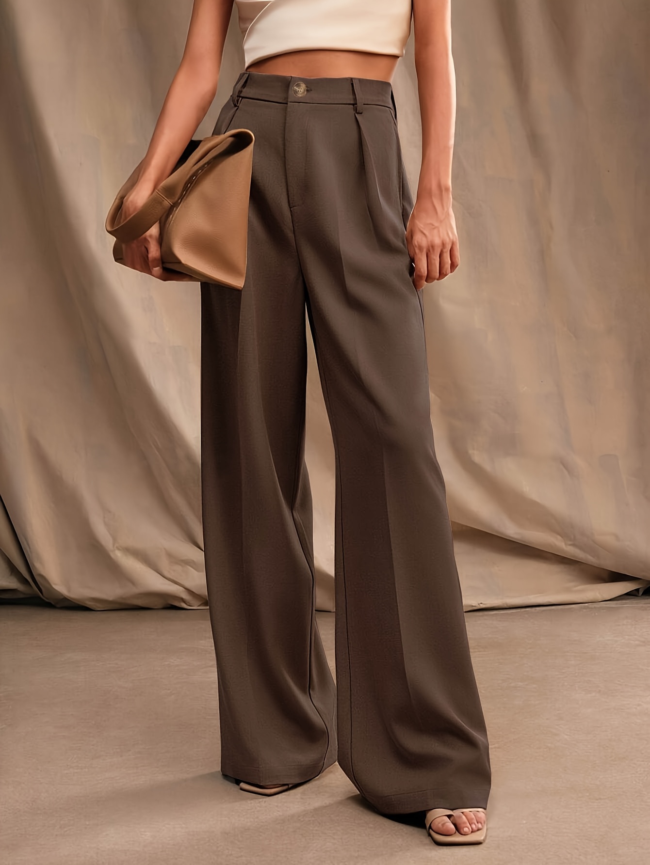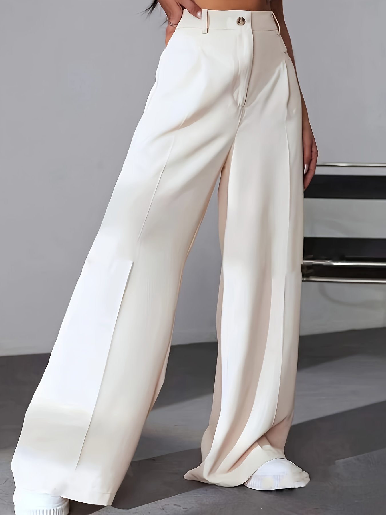 Stylish Wide Leg High Waist Pants - Elegant Office & Work Pants for Women - Comfortable, Flattering, and Versatile Clothing for Daily Wear