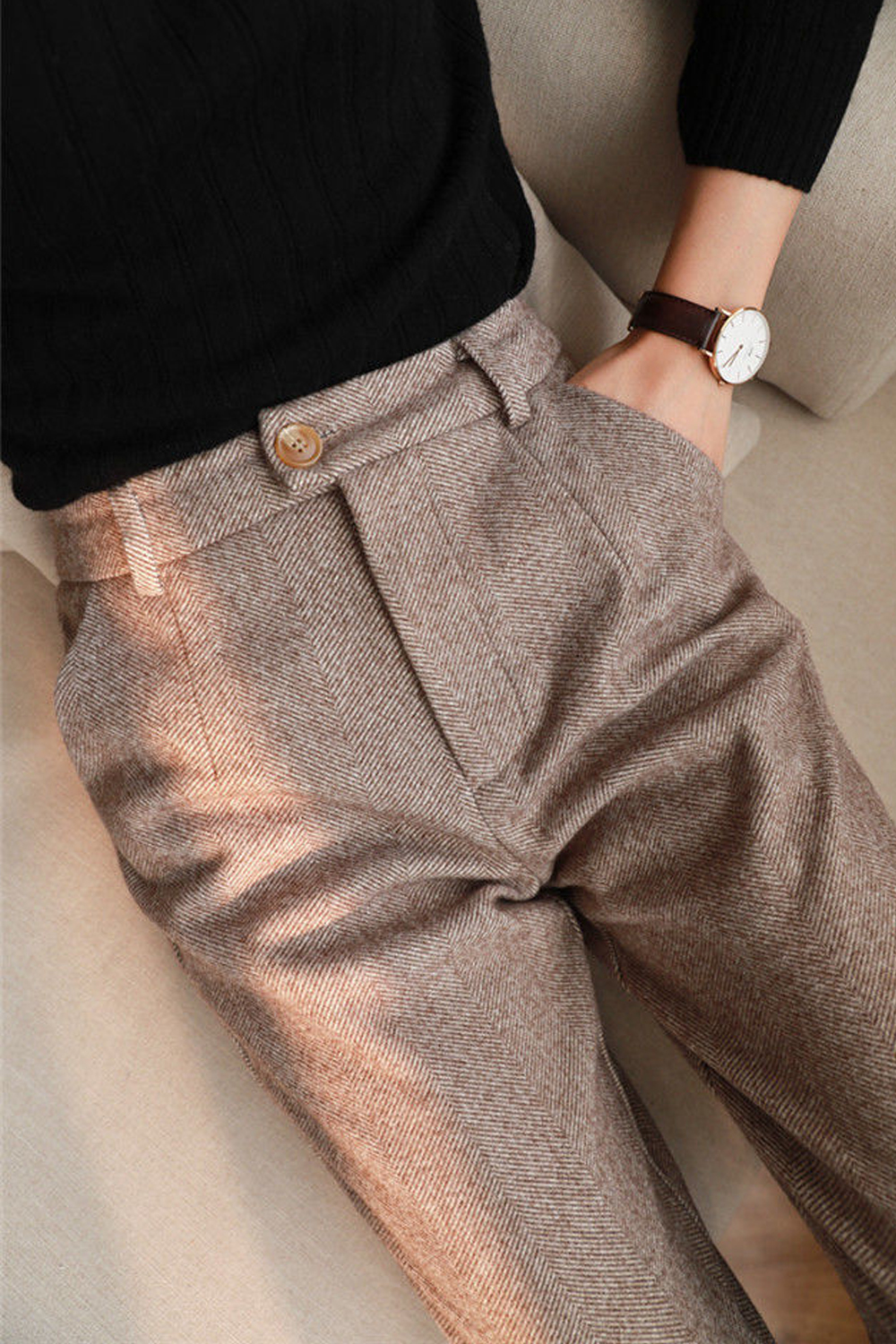 Woolen High Waisted Pants Women's Harem Pencil Pants