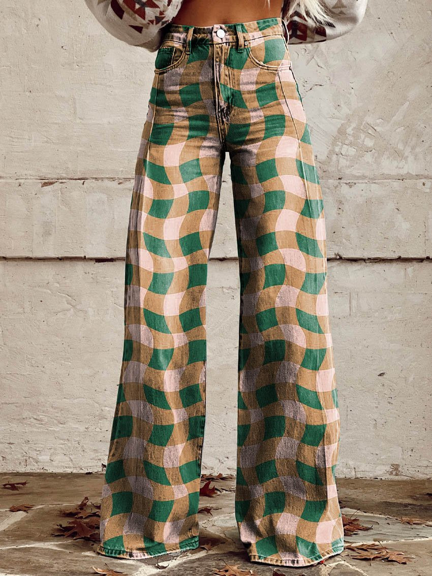Women's Color Geometric Texture Print Casual Wide Leg Pants