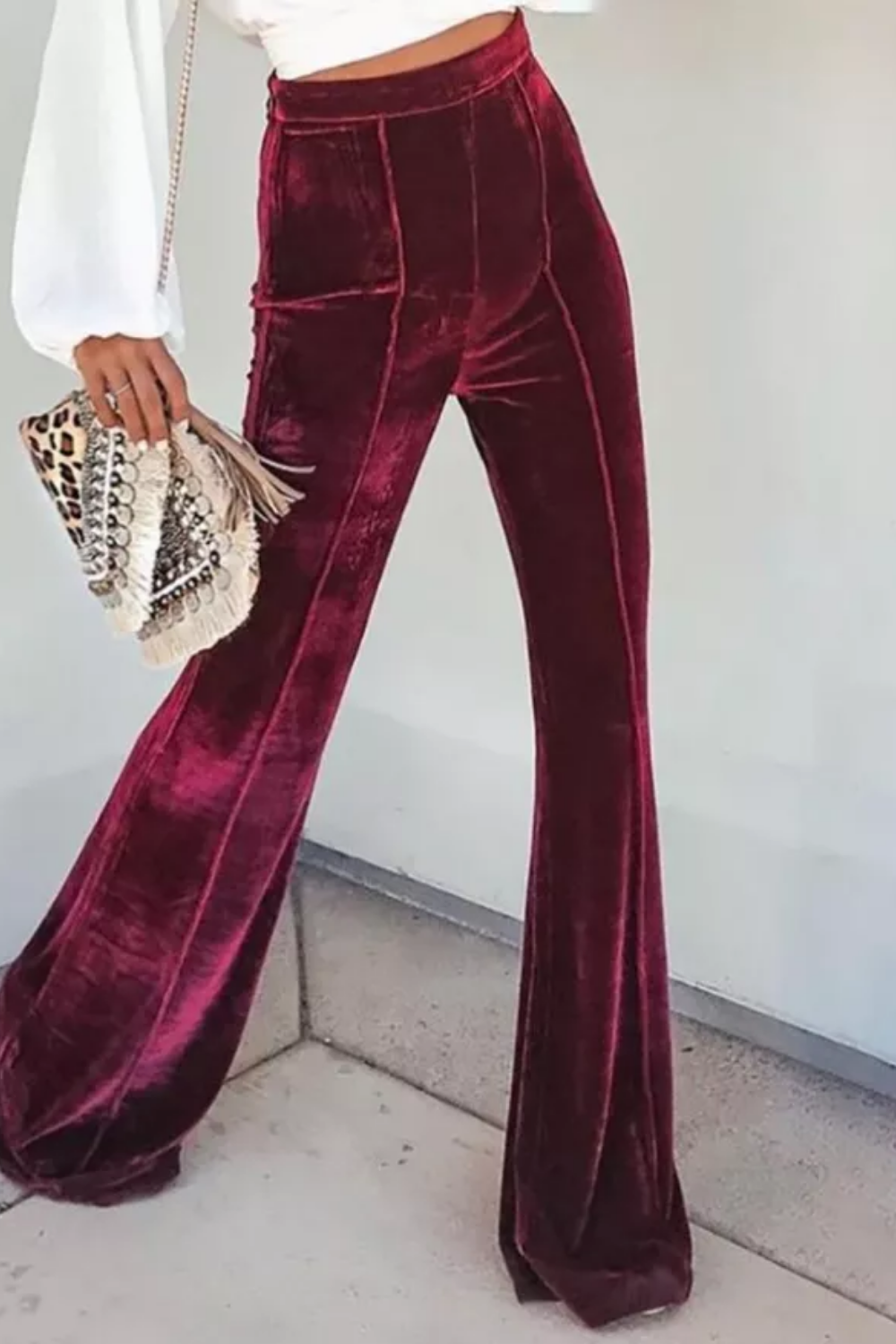 Fashion Velvet High Waist Casual Flared Pants
