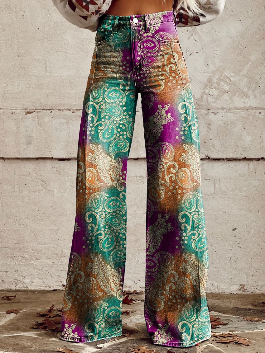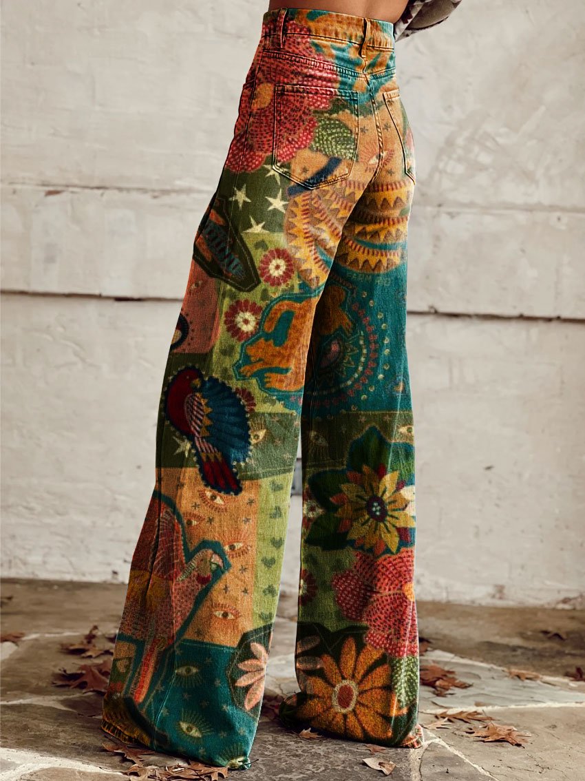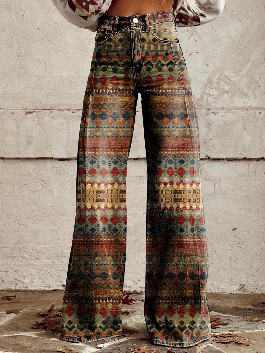 Women's Vintage Wild West Print Casual Wide Leg Pants