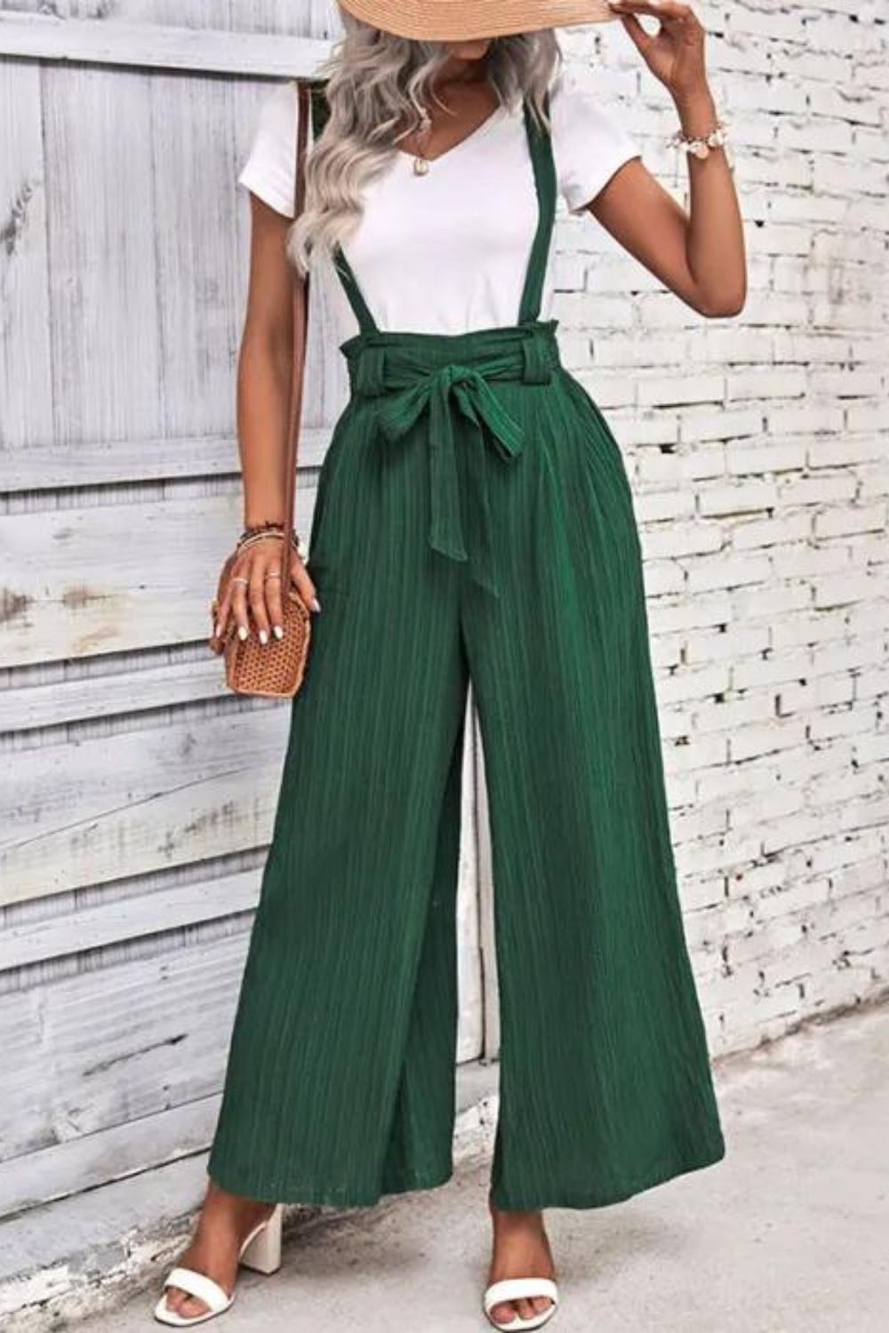 Women Fashion Solid Color Summer Adjustable Casual Wide Leg Overalls