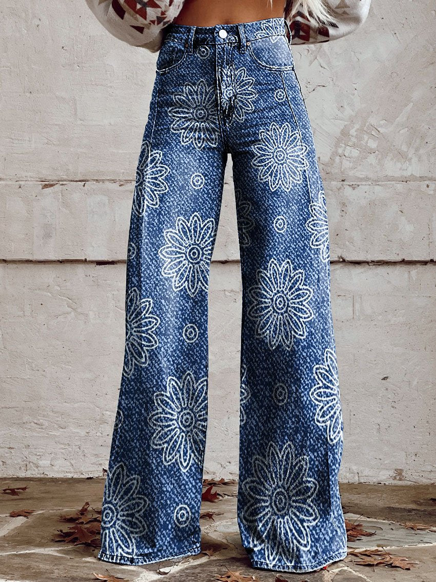 Women's Vintage Flower Daisy Print Casual Wide Leg Pants