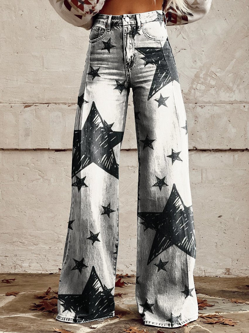Women's Vintage Colorful Stars Print Casual Wide Leg Pants