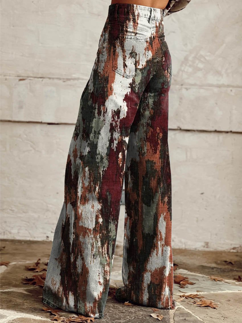 Women's Rust Print Casual Wide Leg Pants
