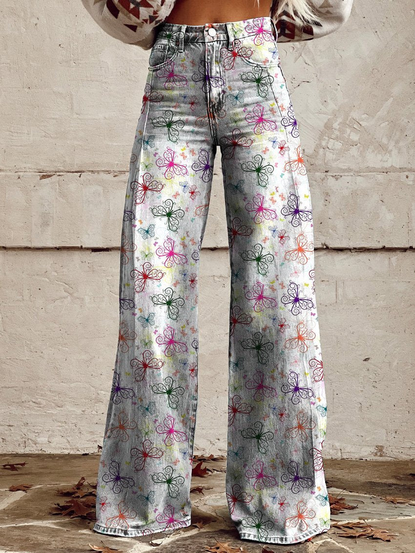 Women's Print Casual Wide Leg Pants Dreamy Butterfly Print