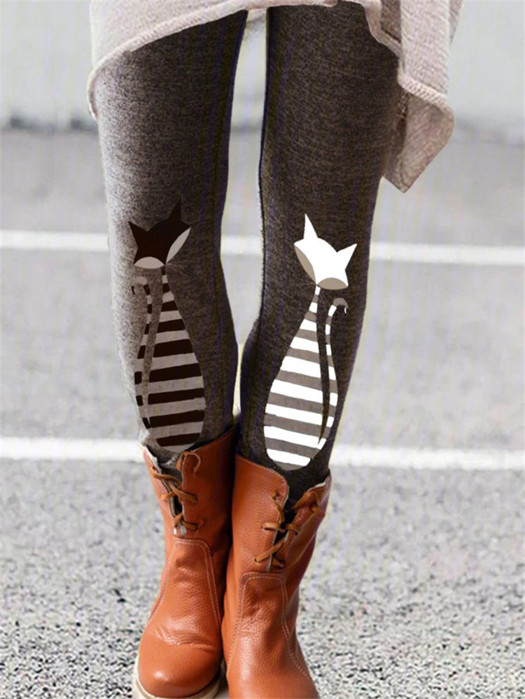 Women's Fashion Brushed Print Slim Fit Slim Boots Pants