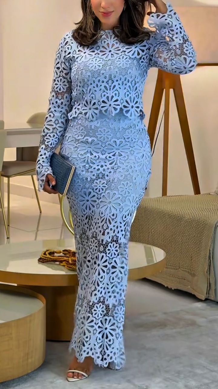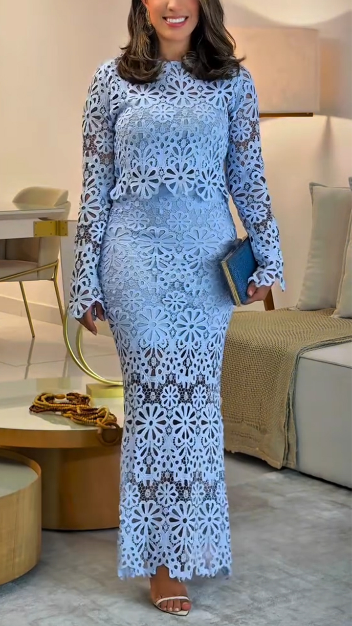 Ladies' Round Neck Printed Hollow Elegant Temperament Set