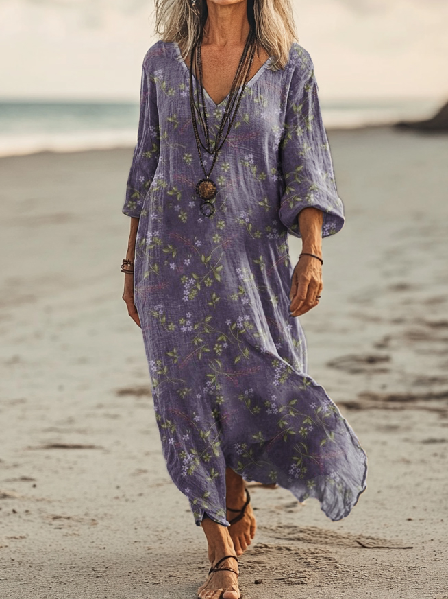 Women's Vintage Bohemian Floral Art Print Casual Cotton Linen Shirt