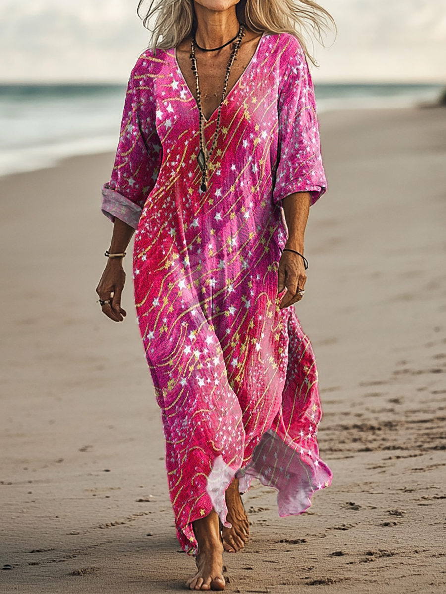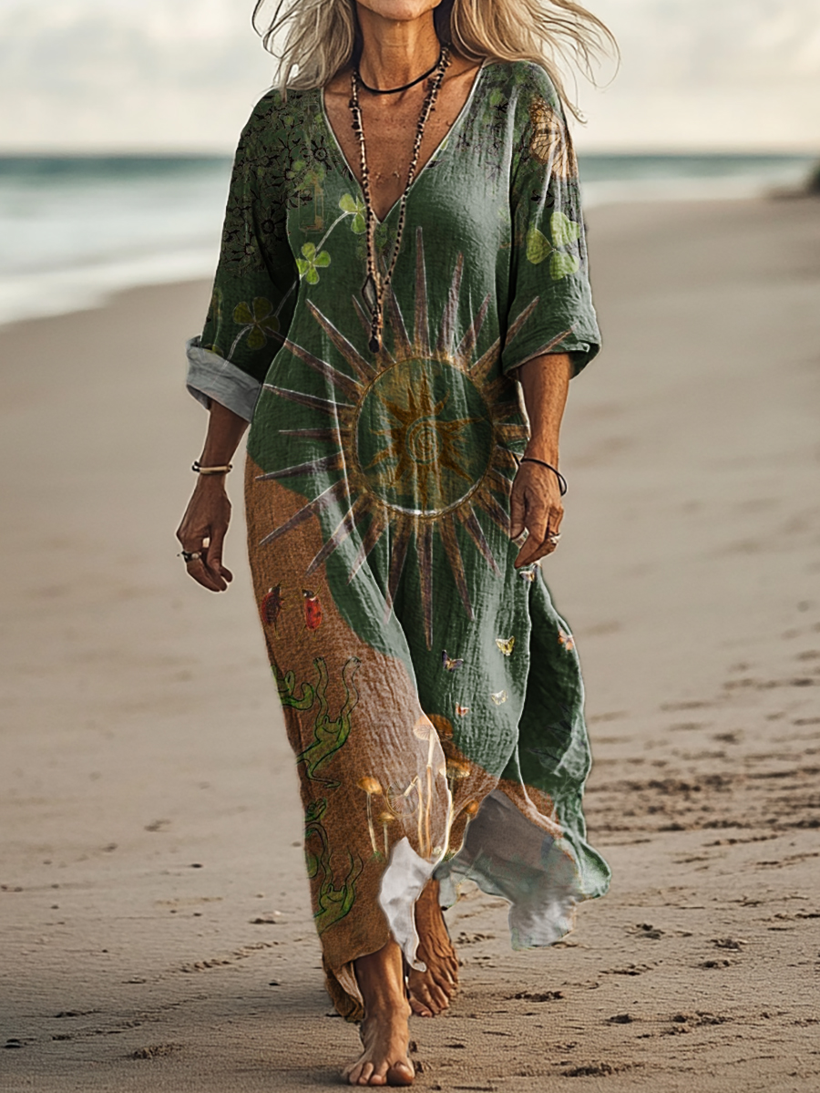 Women's Hippie Art Print Pocket Cotton Dress