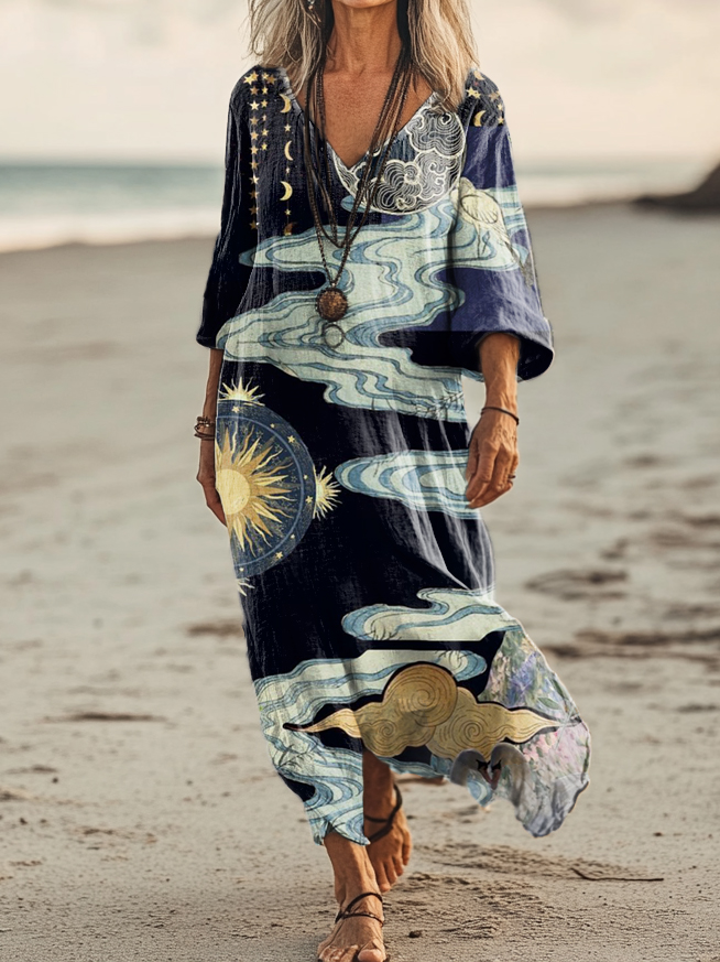 Women's Art Painting Hippie Print V-Neck Dress