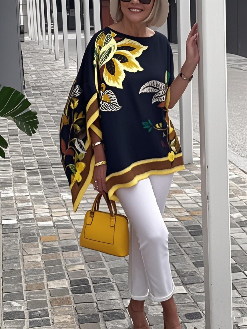 Summer new style high-end printed short-sleeved mid-length top