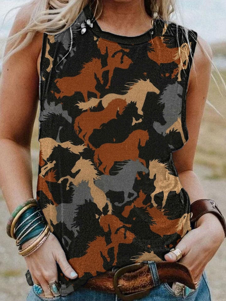 Women's Vintage Silhouette Horse Print Casual Tank Top