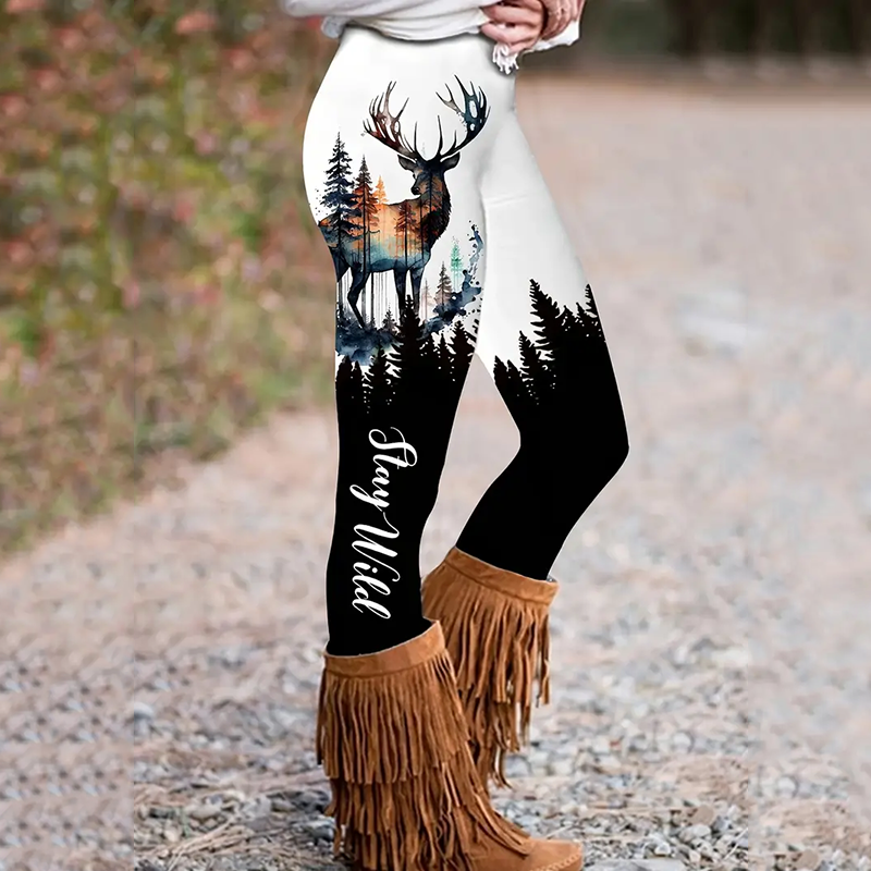 Women's Landscape Art Print Casual V Neck T-Shirt