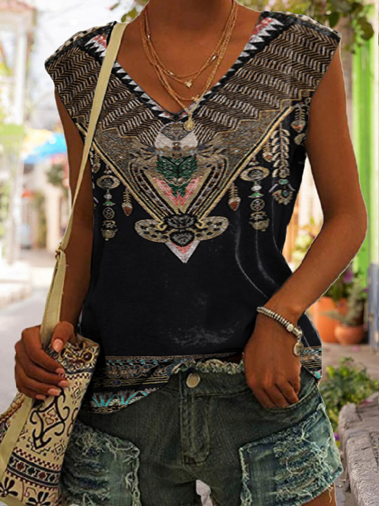 Vintage Ethnic Geometric Pattern Women's Tank Top