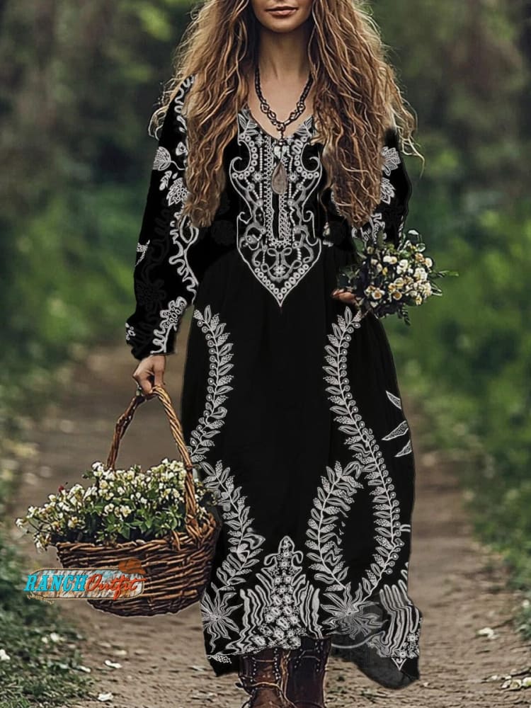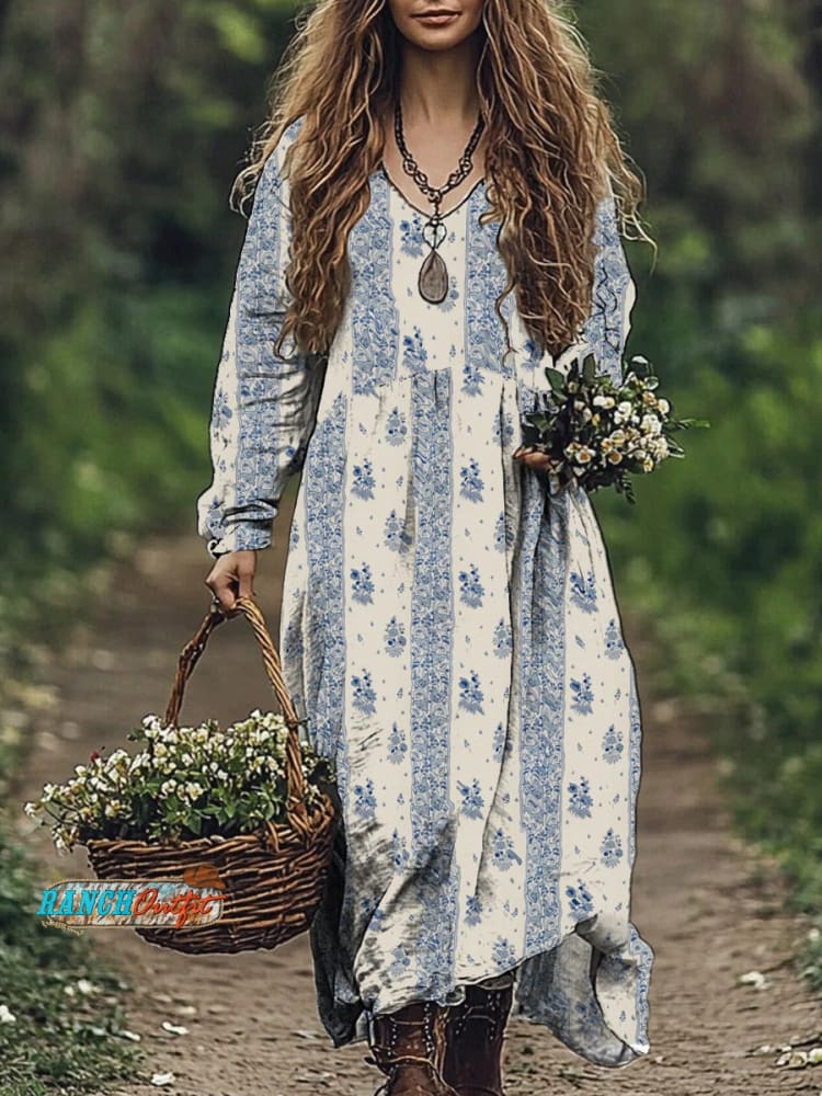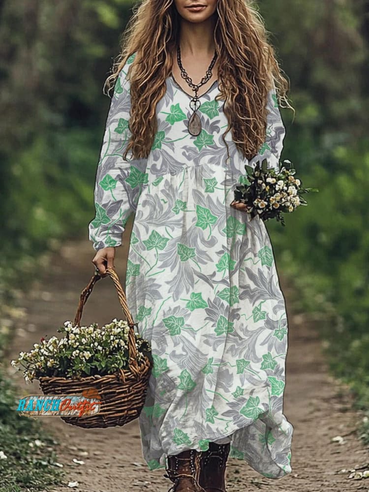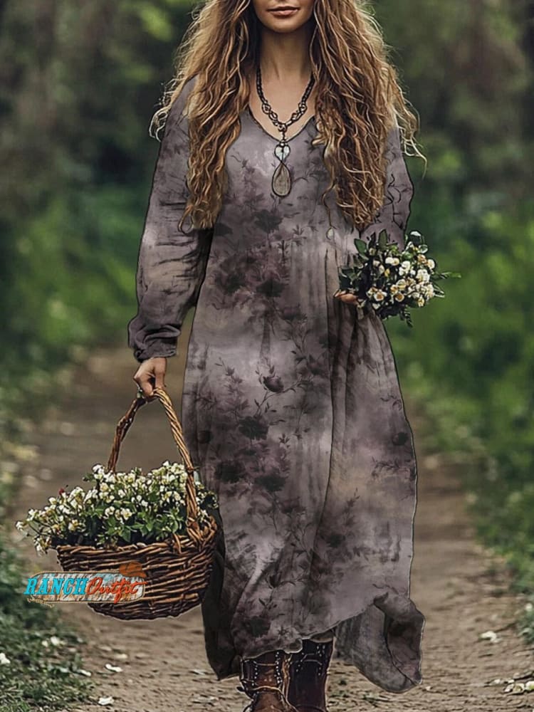 Women's Casual Art Print Cotton and Linen Maxi Dress