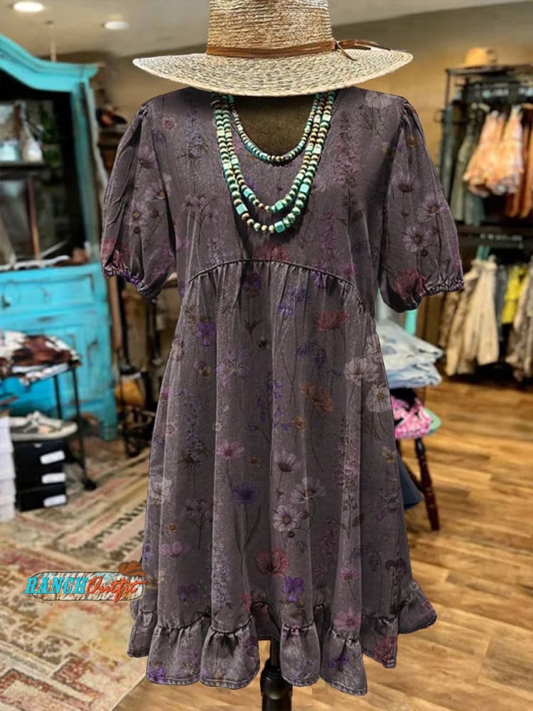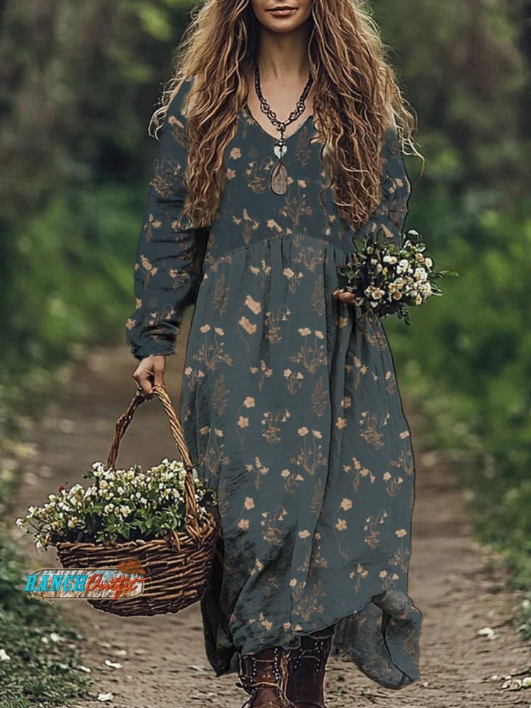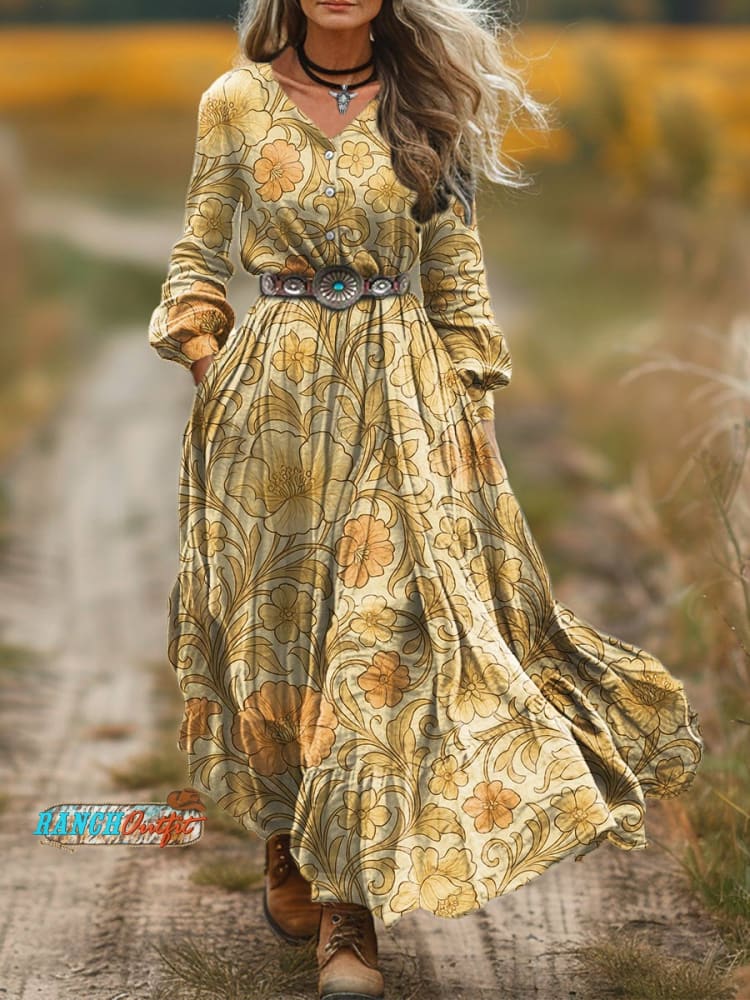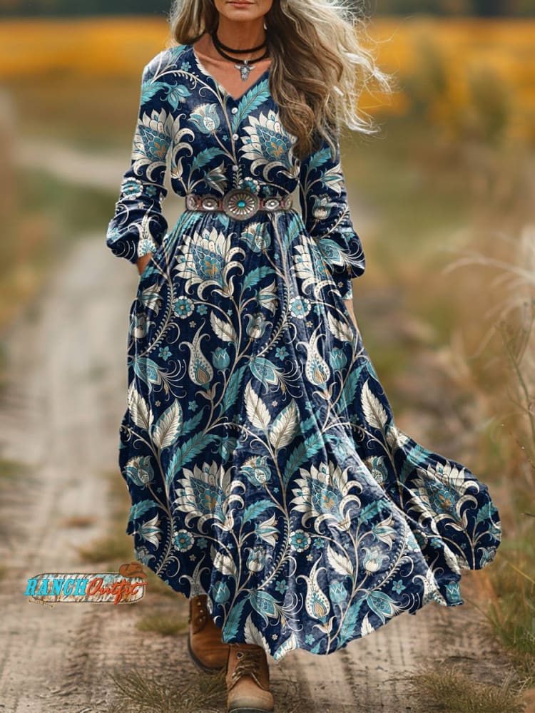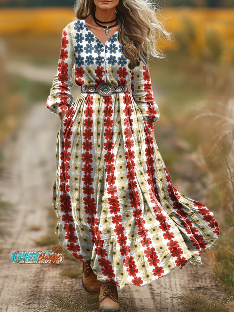 Women's Vintage Floral Print Casual Pocket Cotton Dress