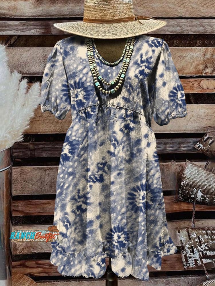 Women's Print V-Neck Button Pocket Cotton Dress