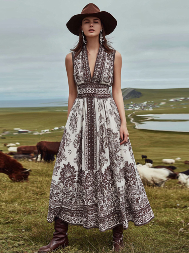 Women's Vintage Western Paisley Print Tank Midi Dress