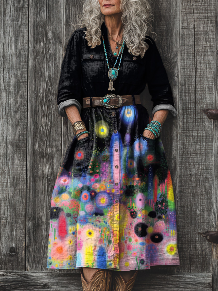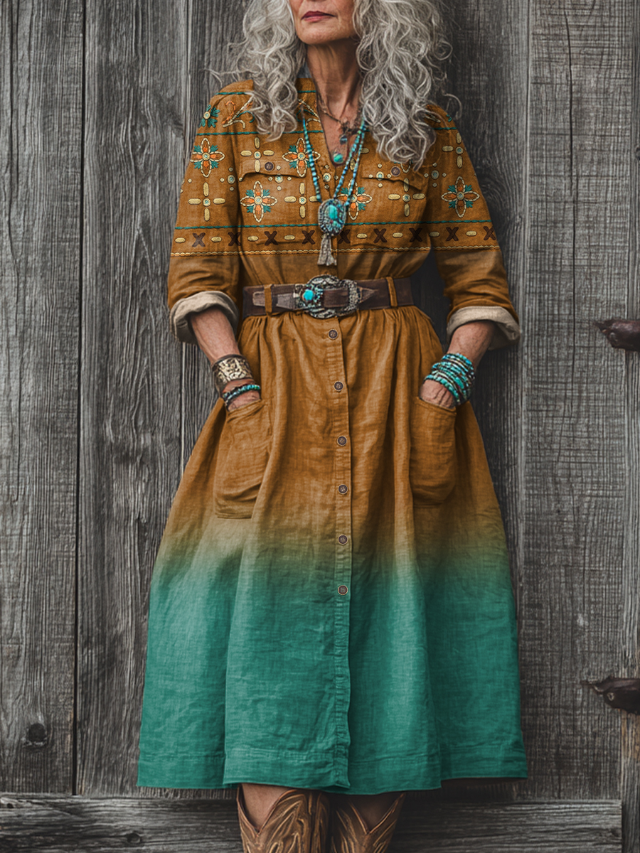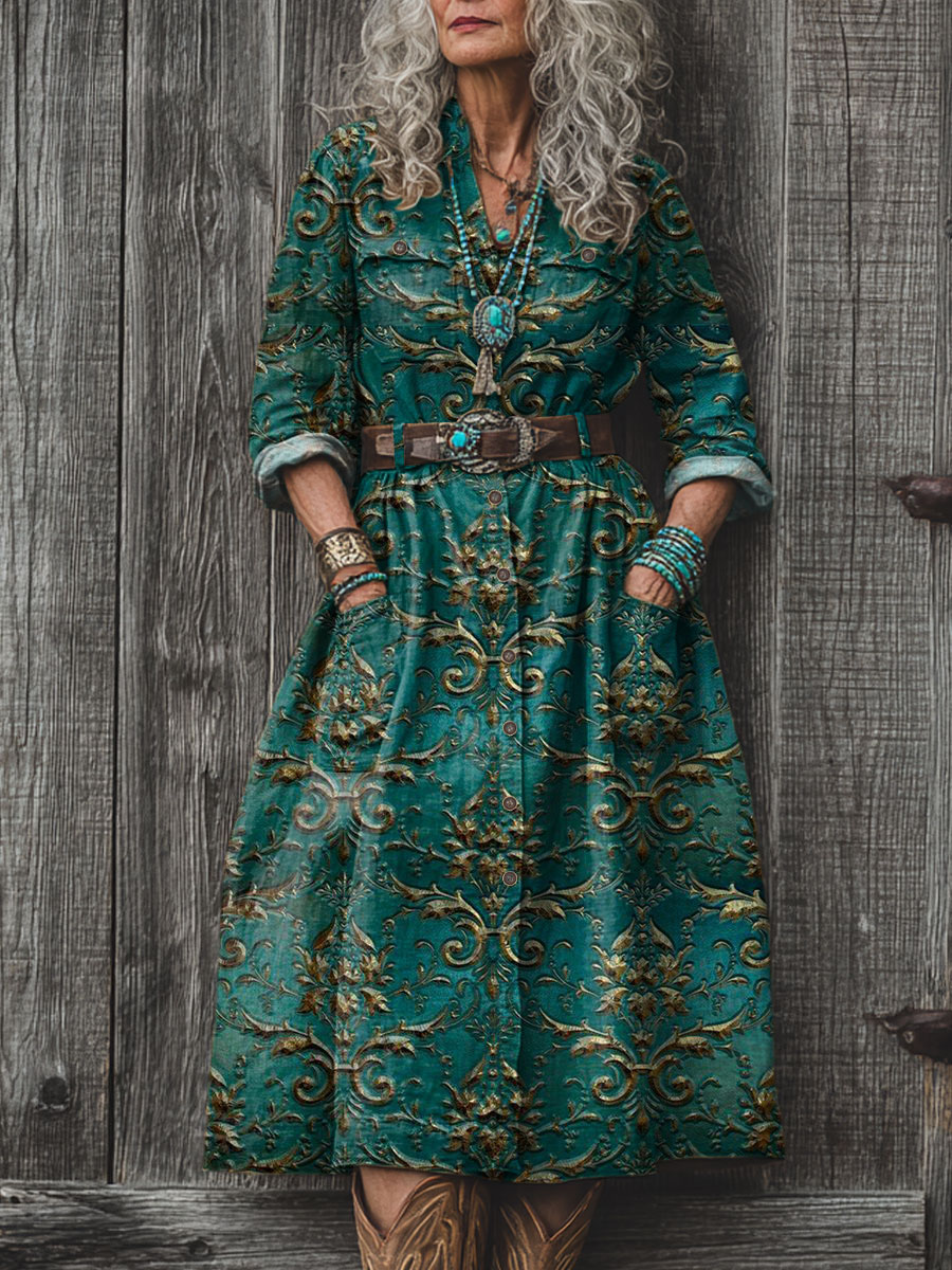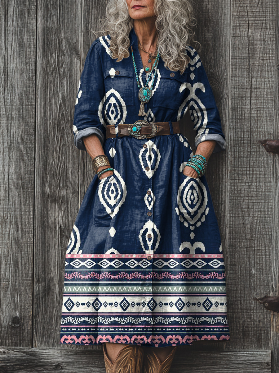 Women's Ethnic Imitation Embroidery Vintage Flowers Art Print Dress