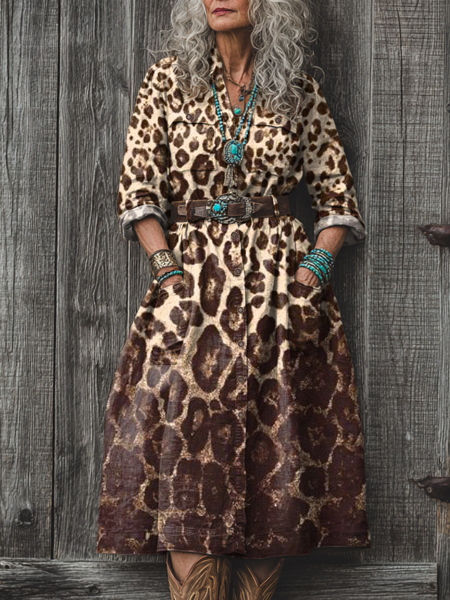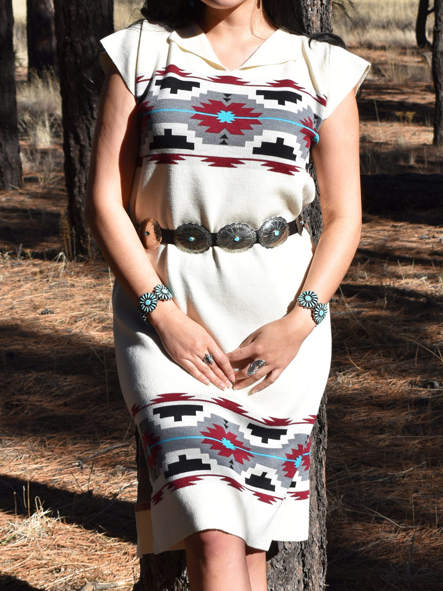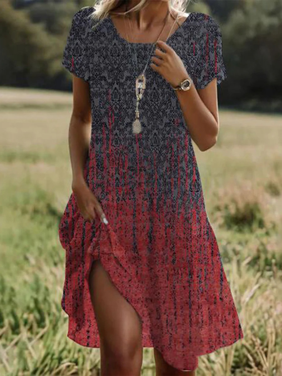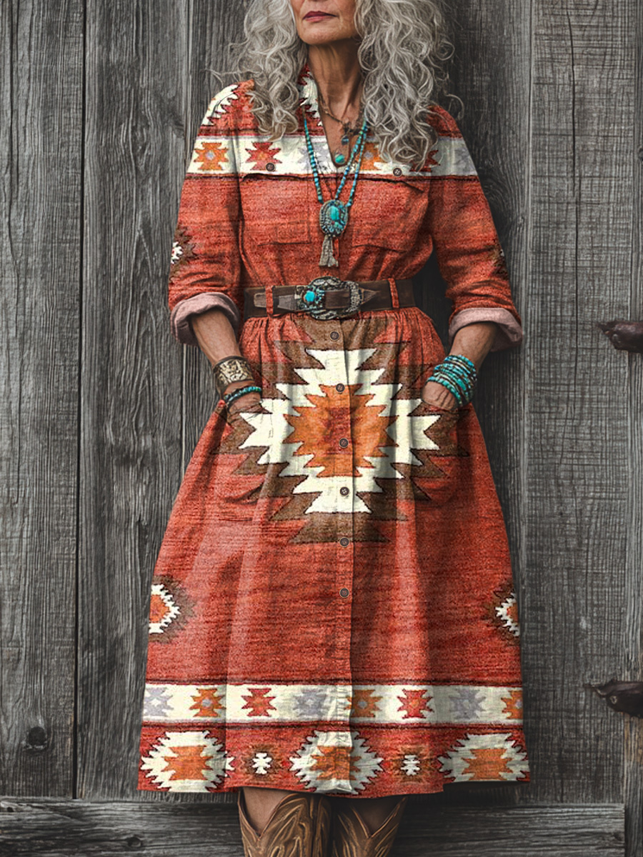 Women's Ethnic Imitation Embroidery Vintage Flowers Art Print Dress