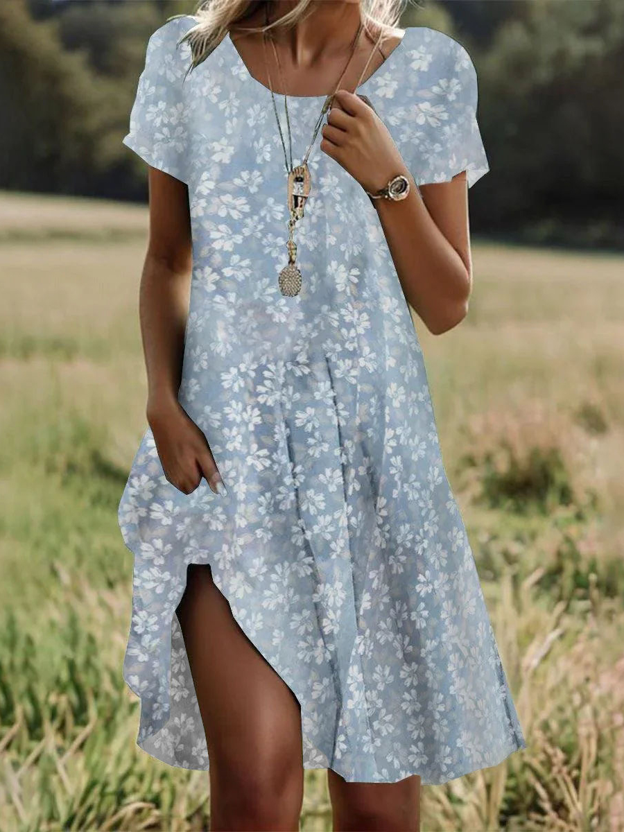 Women's Simple Turquoise Floral Art Pattern Print Dress