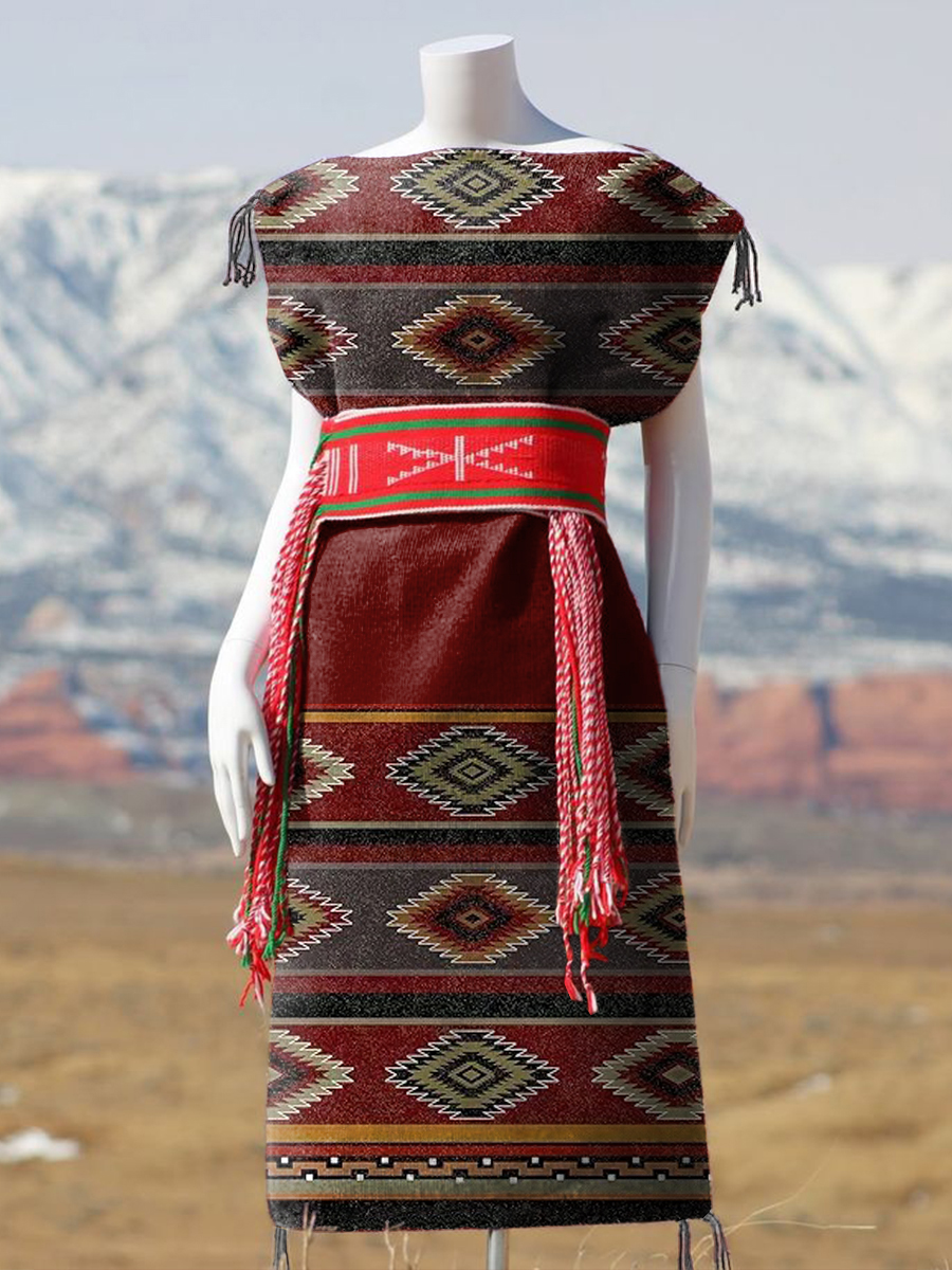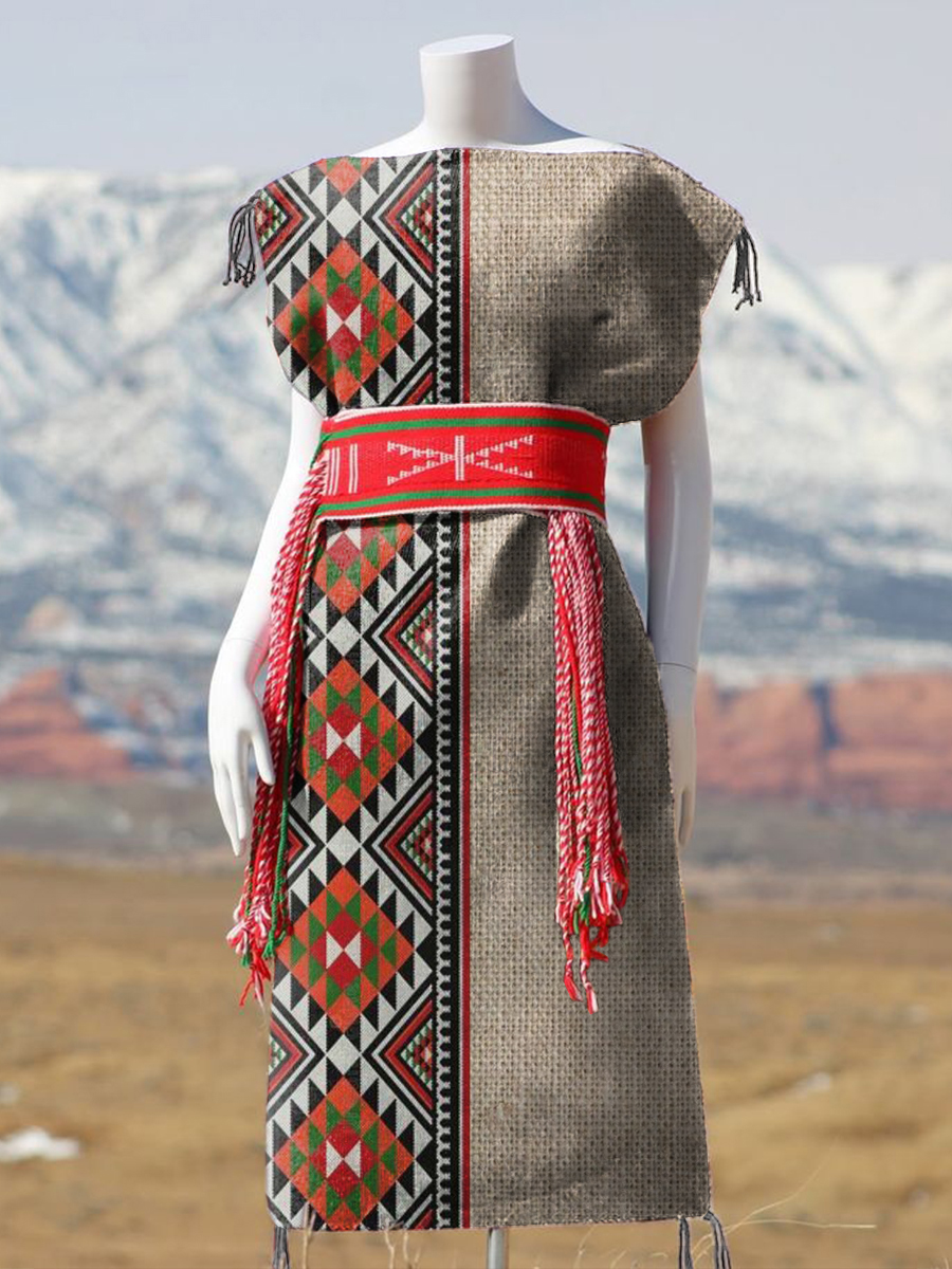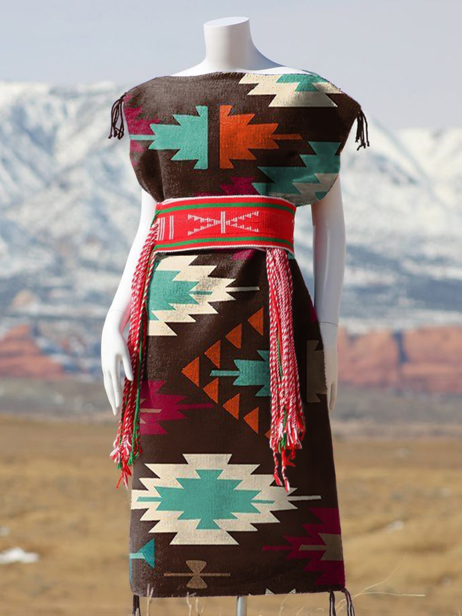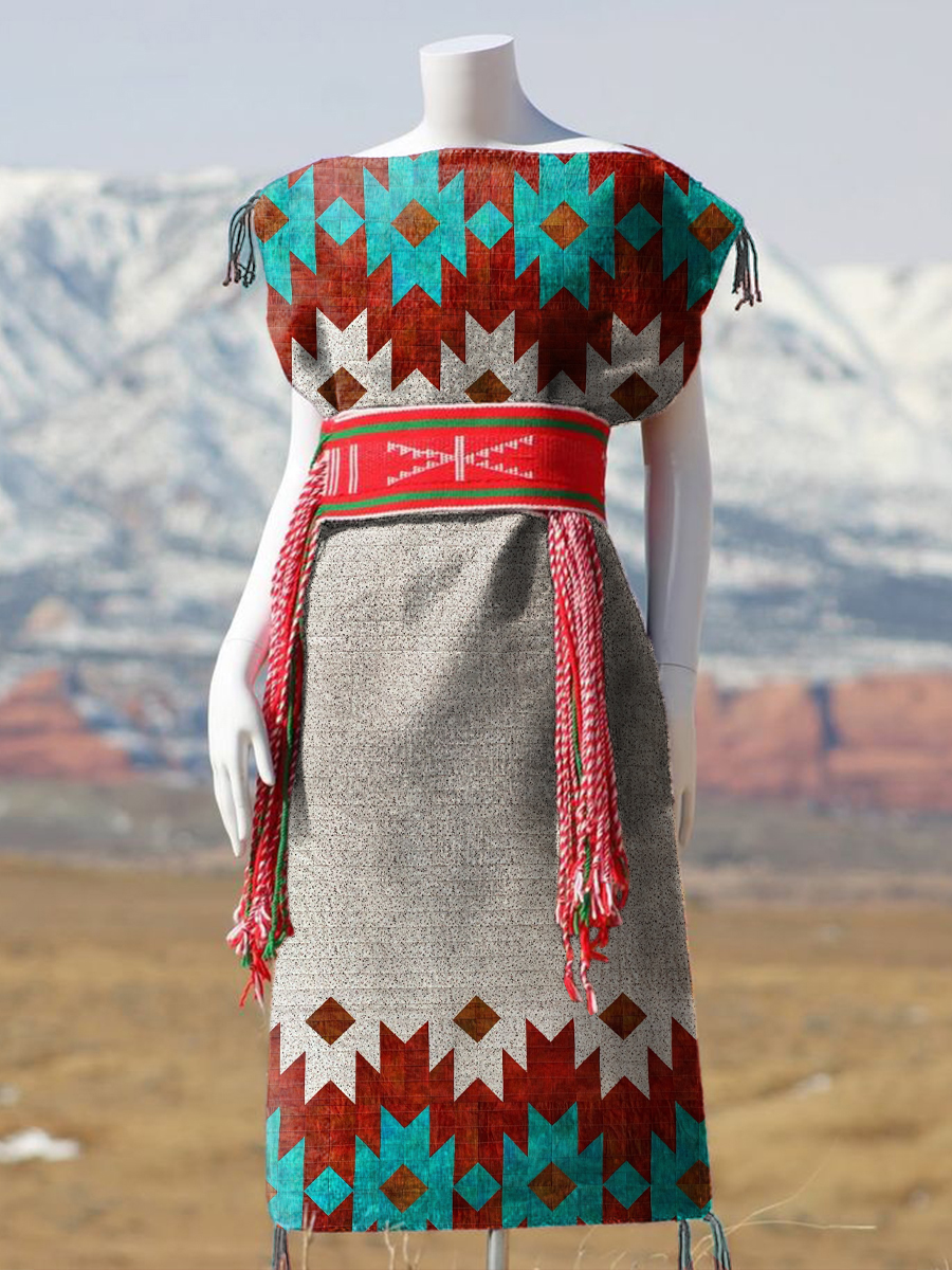 Women's Vintage Aztec Print Suspender Maxi Dress