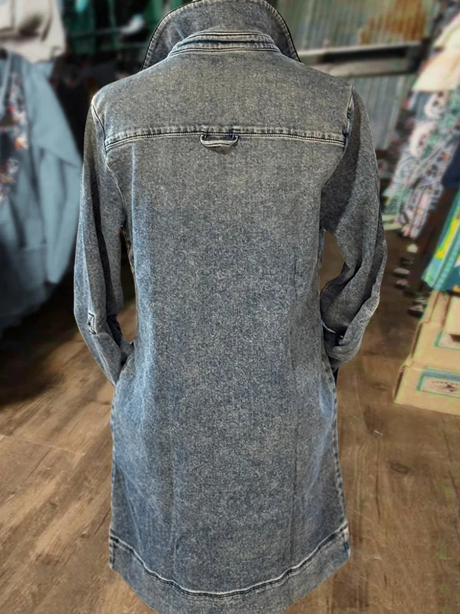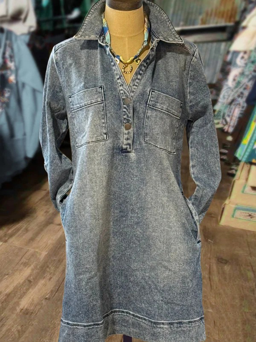 Women's Casual Long Sleeve Pocket Cotton Dress