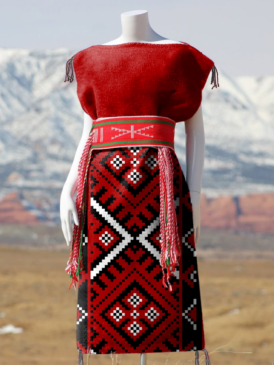 Women's Red Tribal Abstract Geometry Sleeveless Cotton Pocket Wrap V Neck Dress