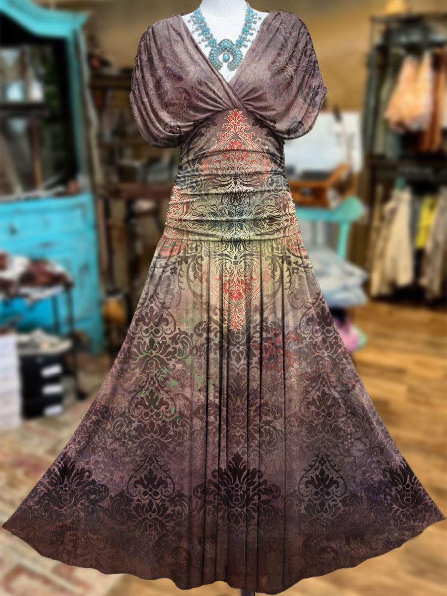 Women's Vintage Floral-print Stretch-mesh Maxi Dress