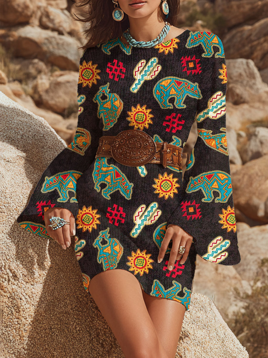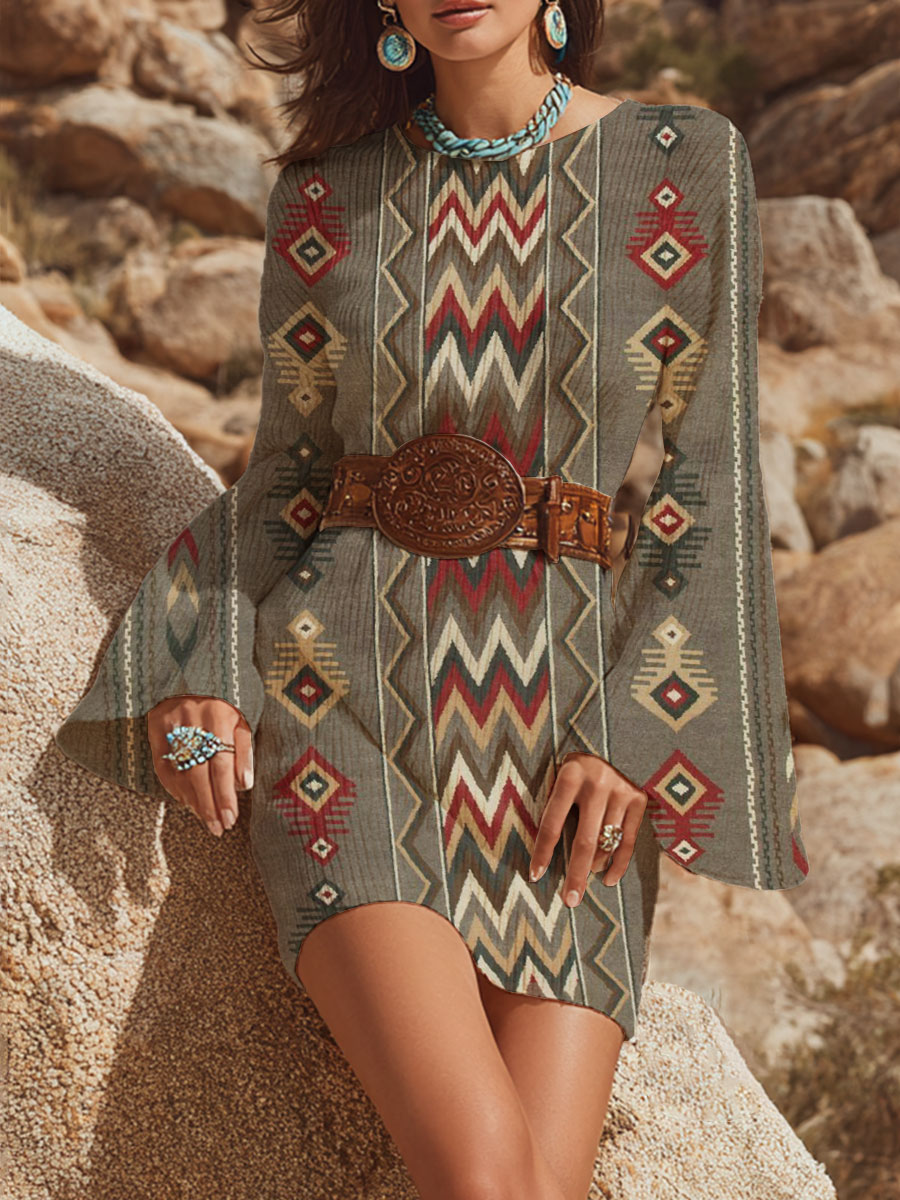 Women's Vintage Western Tribe Print Suspender Maxi Dress