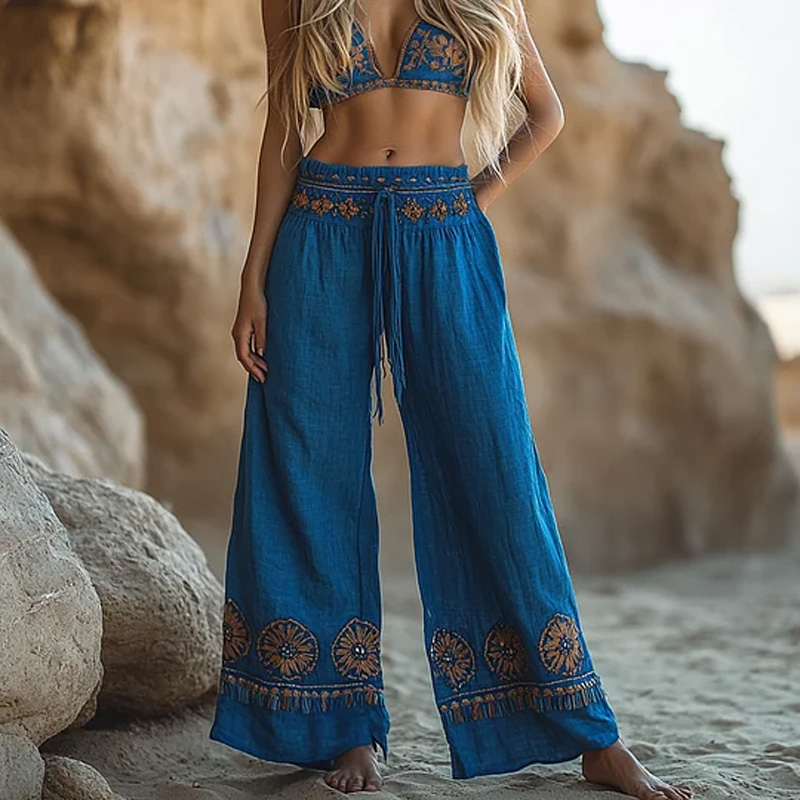 Women's Casual Bohemia Vacation Linen Style Long Loose Wide-leg Trouser Pants