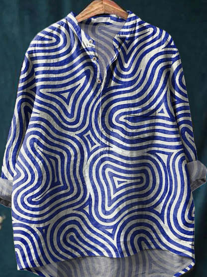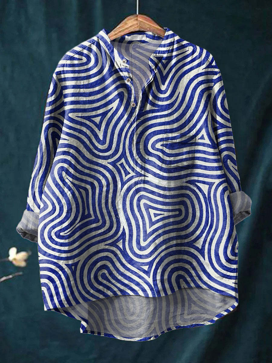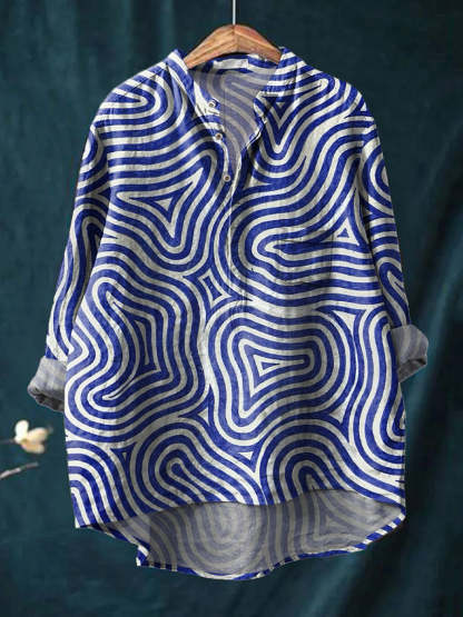 Abstract Swirl Pattern Printed Women's Casual Long Sleeve Comfortable Cotton Shirt